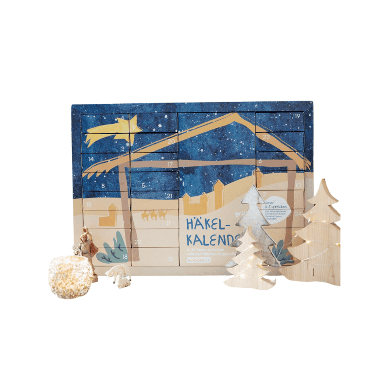 Mit dem Häkel-Adventskalender Krippe 2025 erleben Sie Advent auf eine ganz besondere Weise: Hinter 24 liebevoll gestalteten Türchen verbirgt sich nicht nur Material, sondern auch tägliche Freude am Kreativsein. Stück für Stück entsteht Ihre eigene, handgemachte Weihnachtskrippe – von Maria über das Jesuskind bis zu Engeln und Tieren. Dieser Kalender verbindet besinnliche Vorfreude mit DIY-Lust, liefert alle notwendigen Garne, Zubehör und gut aufbereitete Anleitungen und ist somit ideal für alle, die Weihnachtsdekoration mit Herz lieben.