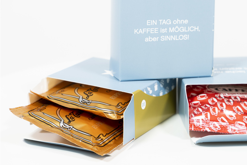 Da bekanntlich Kaffee in Zweisamkeit noch besser schmeckt, enthält jede Schachtel zwei ESE Pads, insgesamt sind also 48 Stück ESE-Pads enthalten. Auf diese Weise sorgt der Kalender dafür, sich einmal pro Tag die Zeit zu nehmen, mit jemanden gemeinsam eine kleine Kaffeepause zu halten. Gönnen Sie sich eine Auszeit und zelebrieren Sie die Adventzeit mit vollmundigem Kaffeegeschmack.