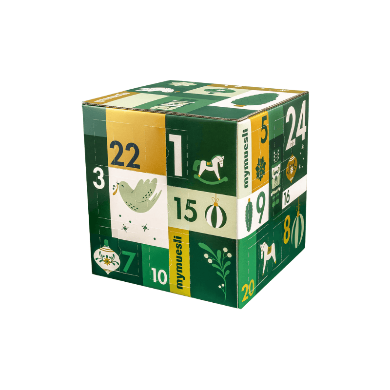 24 verschiedene Türchen – 12x Bio-Müsli und 12x Bio-Porridge, keine Sorte doppelt. Praktische Portionsbecher – ideal für Arbeit, Uni oder Schule.
